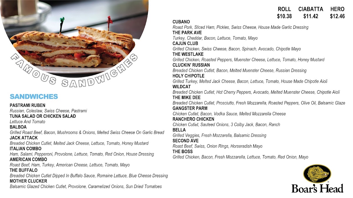 Roast pork, sliced ham, pickles, Swiss cheese, house made garlic dressing